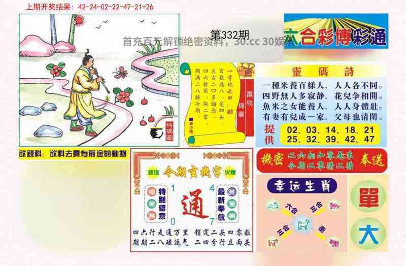 | 332期:无敌七肖【兔猪龙虎蛇羊牛】开:發00准 |